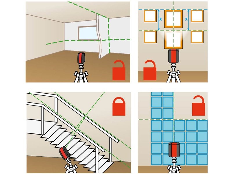 určen k zajištění a kontrole svislých a vodorovných linií vzhledem k promítaným laserovým liniím s využitím funkce nivelační automatiky, nebo také k projekci laserových linií s požadovaným úhlem sklonu bez možnosti nivelace (viz dále), přičemž přístroj lze připevnit na stativ nebo na dodávaný stojan s magnetem s uchycením přístroje na magnetický povrch.